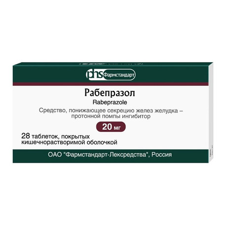 После приема внутрь всасывается из ЖКТ. При дозе 20 мг Cmax достигается через 3.5 ч. Изменения Cmax и AUC носят линейный характер (в диапазоне доз от 10 до 40 мг). Абсолютная биодоступность составляет около 52% вследствие эффекта "первого прохождения" через печень. Биодоступность рабепразола не увеличивается при многократном приеме.