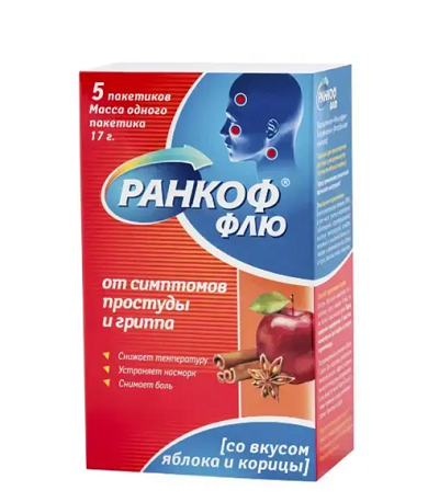 | Безрецептурный препарат | Ранкоф® Флю | Порошок для приготовления раствора для приема внутрь (со вкусом малины): пак. 17 г 5 шт. рег. №: ЛП-008620 от 17.10.22 *- Действующее* Дата переоформления: 18.07.23 |