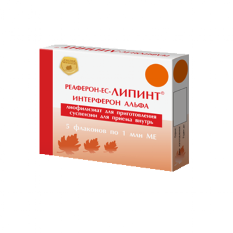 | Реаферон-ЕС-Липинт® | Лиофилизат д/пригот. сусп. д/приема внутрь 1 млн.МЕ: фл. 1, 3, 5, 6, 10 или 12 шт. рег. №: Р N000821/01 от 26.06.13 *- Бессрочно* Дата перерегистрации: 26.12.19 | |