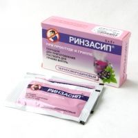 Другие формы «Ринзасип»Порошок для приготовления раствора для приема внутрь от розового до розовато-красного цвета, с белыми и красными кристаллическими вкраплениями, со вкусом черной смородины.