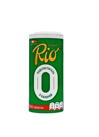 РИО ГОЛД ФИТ - Специализированный пищевой продукт для диетического профилактического питания «Фит» Внешний вид: твердые таблетки круглой формы белого цвета. Пищевая ценность в 100 г продукта: белки 0 г, жиры - О г, углеводы - 0 г. Энергетическая ценность: 0 ккал/ 0 кДж. Современный подсластитель Rio Gold на основе сахарина и цикламата это идеальная замена сахара. В отличие от более традиционных подсластителей, он обладает нулевой калорийностью и не влияет на уровень сахара в крови после его употребления. Полезен не только при диабете, но и в качестве средства предотвращения развития этой болезни. Также подходит всем, кто хочет снизить потребление сахара: спортсменам, худеющим, и тем, кто заботится о своём организме и режиме питания. Можно добавлять в напитки: чай, кофе, какао, компот, лимонады и так далее, и продукты питания: каши, супы, выпечку, сырники и так далее).