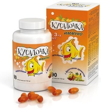 «КУСАЛОЧКА ИММУНО» – витаминный комплекс для детей, содержит биологически активные компоненты, способствующие укреплению иммунитета: полиненасыщенные жирные кислоты омега-3 (ПНЖК омега-3) витамин D витамин A и каротиноиды витамин E.