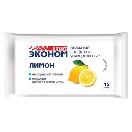 Другие формы «Салфетки Эконом Smart влаж.»Форма выпуска и упаковка - 15 штук в уп. Влажные салфетки, эффективно и бережно очищают кожу рук, оставляя длительное ощущение свежести и комфорта, где бы вы ни находились: дома, на прогулке, в гостях.