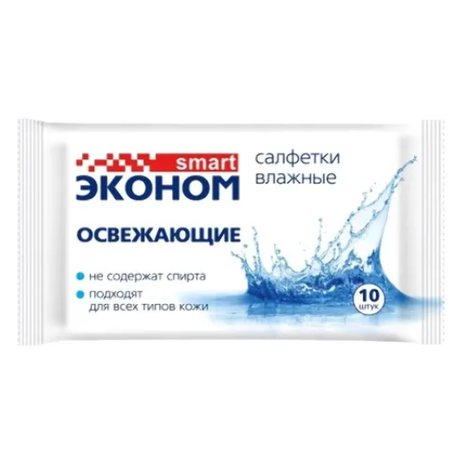 Другие формы «Салфетки Эконом Smart влаж.»Эконом smart влажные салфетки освежающие. Специальные особенности: не содержат спирта. Пропитанные специальным лосьоном, салфетки эффективно очищают и освежают кожу, оставляя длительное ощущение свежести и комфорта. Незаменимы в любой ситуации: дома, в офисе, на природе, на прогулке. Результат: чистые руки и увлажненная кожа.