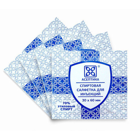 Салфетка «Асептика» пропитана 70% этиловым спиртом, обеспечивает эффективную санацию кожи в зоне постановки инъекций и сокращает количество манипуляций (вата, спирт).