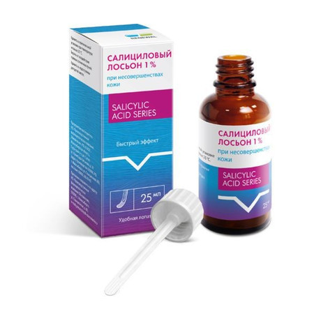 Салициловый лосьон 1 % - косметическое средство для ухода за кожей, склонной к высыпаниям и покраснениям. Салициловый лосьон благотворно влияет на проблемные участки кожи благодаря антибактериальному, подсушивающему эффекту. Средство глубоко проникает в поры, отшелушивая клетки, освобождает протоки сальных желез, облегчая выделение кожного жира, что способствует сокращению размера пор. Предупреждает появление черных точек, уменьшает дискомфорт при появлении высыпаний. Способствует процессу обновления кожи, сокра щает следы постакне, выравниваеттон и рельеф кожи.