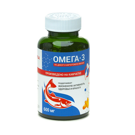 1 капсула содержит по 600 мг рыбного жира из дальневосточных лососевых видов рыб в т.ч., дикого камчатского лосося) (ПНЖК омега-3 – не менее 30%), желатин, глицерин (агент влагоудерживающий), вода, смесь токоферолов (антиокислитель).