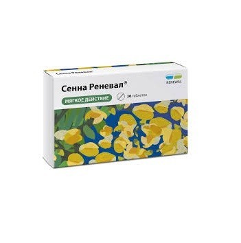 СЕННА РЕНЕВАЛ - Биологически активная добавка (БАД) к пище - слабительное средство растительного происхождения. Внешний вид и свойства: круглые плоскоцилиндрические таблетки от светло-коричневого до темно-коричневого цвета с более светлыми и более темными вкраплениями, с фаской и риской, с характерным запахом. Содержание БАВ в суточной дозе (1 таблетка): Антраценпроизводные (сеннозиды А и В) 14 мг 140 % от адекватного уровня потребления согласно Единым санитарно-эпидемиологическим и гигиеническим требованиям к продукции (товарам), подлежащей санитарно-эпидемиологическому надзору (контролю) (Глава II, Раздел 1, Приложение 5); не превышает верхний допустимый уровень потребления. Сенна является широко известным слабительным средством растительного происхождения. В экстракте сенны содержатся антраценпроизводные (сеннозиды А и В), которые, способствуют улучшению перистальтики кишечника, тем самым оказывая мягкое послабляющее действие.