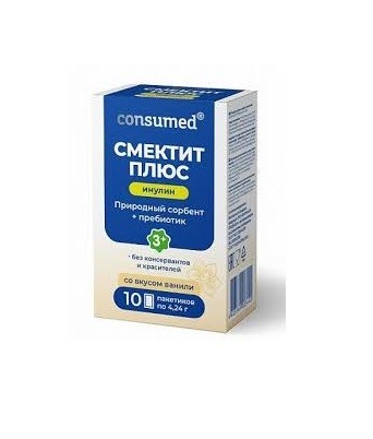 Комплекс Смектит-Плюс содержит в себе природный сорбент в высокой сорбционной активностью "Смектит"-монтмориллонит и пребиотик инулин, которые оказывают комплексное детоксикационное воздействие на желудочно-кишечный тракт, способствуют улучшению состояния при диарее, изжоге, вздутии, выводу токсинов и восстановлению микрофлоры кишечника.