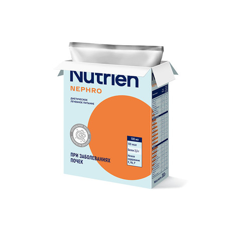 Для энтерального питания (зондового и перорального использования) для взрослых и детей старше 3 лет, с хроническими заболеваниями почек и острой почечной недостаточностью. - Анорексия на фоне уремии - Уремическая энтеропатия - Необходимость в дополнительном питании - Острая почечная недостаточность - Пред- и послеоперационный период при хирургических вмешательствах на почках, в т. ч. трансплантация почки - Полиорганная недостаточность - Во время проведения гемодиализа, перитонеального диализа, в междиализном периоде - Энтеральное питание больных с ограничениями по содержанию электролитов Перед применением необходима консультация специалиста. Не для парентерального питания. Nutrien Nephro подходит для энтерального питания с помощью зонда или гастростомы. Также из смеси легко приготовить напиток, который пациенты могут пить самостоятельно.