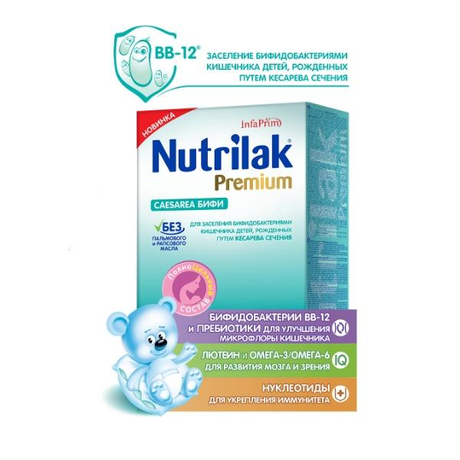 Молочная смесь Nutrilak Premium Caesarea Бифи создана специально для заселения бифидобактериями кишечника детей, рожденных путем кесарева сечения. Она имеет уникальный состав без пальмового и рапсового масел, включает комплекс витаминов, а также макро- и микроэлементов, которые способствуют здоровому развитию крохи. Омега-3 и Омега- 6 жирные кислоты являются структурными компонентами головного мозга, способствуют развитию интеллектуальных способностей. Лютеин защищает сетчатку глаз крохи, а нуклеотиды способствую формированию иммунной системы и созреванию желудочно-кишечного тракта. Продукт был разработан совместно с ведущими специалистами "Научного центра здоровья детей" Министерства здравоохранения Российской Федерации. Молочная смесь Nutrilak Premium Caesarea Бифи - выбор заботливых родителей!