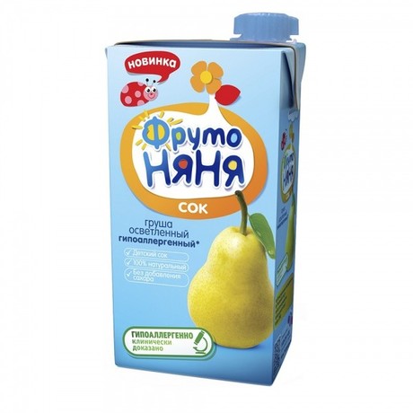 Другие формы «Сок ФРУТОНЯНЯ»Осветленный сок ФрутоНяня Груша. Грушевый сок содержит пектин в большом количестве. Особенно рекомендуется его применение при проблемах с почками. Выводит лишнюю воду, усиливает перистальтику кишечника, выводит шлаки и токсины. Рекомендуется детям с 3 месяцев, начиная с минимальной дозы после одного из утренних кормлений, постепенно увеличивая в течение 5-7 дней до 20-30 мл.
