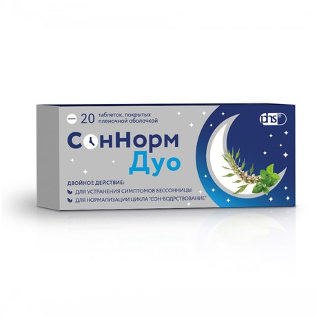 | СонНорм Дуо | Таб., покр. пленочной оболочкой, 3 мг+1.16 мг+28 мг: 20, 30 или 50 шт. рег. №: ЛП-007872 от 08.02.22 *- Действующее* |