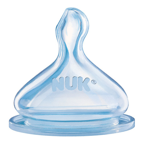 Он адаптируется к ротовой полости ребенка, так что ребенок задействует мышцы губ, челюсти и языка. Ассиметричная форма соски NUK максимально приближена к форме материнского соска в момент кормления грудью.