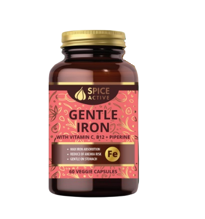 Железо – это минерал, необходимый для образования гемоглобина, молекулы, которая транспортирует кислород к клеткам по всему организму в виде красных кровяных телец. Бисглицинат железа - это особая форма железа, которая считается щадящей для желудка. витамин В12 необходим для выработки красных кровяных телец, в то время как витамин С и Пиперин, как известно, усиливают всасывание железа из желудочно-кишечного тракта.