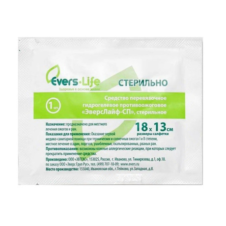 «ЭверсЛайф-Гемо» представляет собой салфетку, пропитанную биологически активным низковязким гидрогелем на основе хитозан-желатинового полиэлектролитного комплекса с иммобилизованными фармсубстанциями аминокапроновой кислоты, кальция глюконата, лидокаина и хлоргексидина, нанесенный на салфетку из нетканого полотна размером 18 х 13 см.