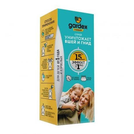 Спрей Gardex оказывает губительное действие на вшей и гнид. После нанесения спрея на кожу и волосы начинает работать входящий в состав диметикон, который известен своими обволакивающими свойствами. Состав быстро проникает в дыхальца (дыхательные отверстия) паразитов и надежно закупоривает их. В результате блокируется дыхательная система насекомых и их влагообмен, поэтому вши гибнут за считанные минуты. Насекомые не способны выработать резистентность (устойчивость) к спрею Gardex, и его эффективность сохраняется даже при многократном использовании. Спрей Gardex нетоксичен и безопасен для человека. Средство подходит для лечения педикулеза у взрослых и детей от 1 года. Диметикон оказывает также положительное косметическое действие - он увлажняет кожу, придает волосам блеск и шелковистость, облегчает их расчесывание.