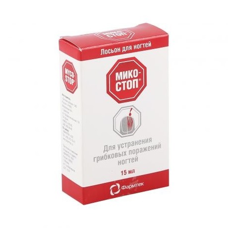 Формирует защитную пленку на поверхности ногтя, которая создает неблагоприятную среду для жизнедеятельности грибка благодаря входящим в изделие пленкообразователю – гидроксиэтилцеллюлозе и эфирным маслам (лаванды и розмарина. Молочная кислота создает кислую среду, губительную для жизнедеятельности грибка. Данный эффект подтвержден для всех грибов, вызывающих грибковые поражения ногтей. Никотиновая кислота в составе средства МИКОСТОП® предотвращает повреждение кутикулы и способствует восстановлению здорового ногтя. Применение средства МИКОСТОП® согласно инструкции позволяет заметно улучшить состояние ногтевой пластины уже за 4 – 8 недель применения и достичь полного восстановления нормальной ногтевой пластины за 6 – 12 месяцев в зависимости от площади и локализации поражения до применения. Средство МИКОСТОП® не оказывает фармакологического, иммунологического, генетического или метаболического воздействия на организм человека.