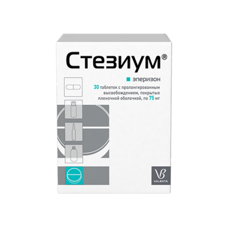 | Стезиум® | Таб. с пролонгир. высвобождением, покр. пленочной оболочкой, 75 мг: 30 шт. рег. №: ЛП-(002455)-(РГ-RU) от 02.06.23 *- Действующее* |