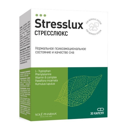 Stresslux быстродействующий комплекс для нервной системы. Аминокислоты, растительные экстракты и витамины группы В комплексно укрепляют нервную систему.