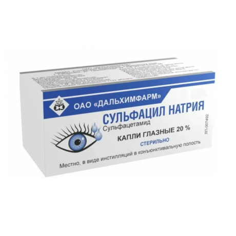 | Сульфацил натрия | Капли глазные 20%: фл.-капельн. 5 мл или 10 мл рег. №: ЛС-001909 от 24.08.11 *- Бессрочно* |