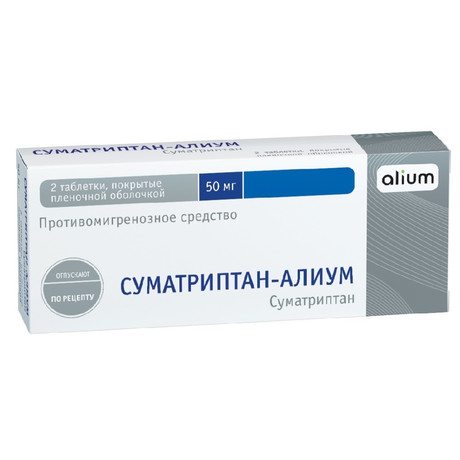 | Суматриптан-Алиум | Таб., покр. пленочной оболочкой, 50 мг: 2, 6, 7 или 10 шт. рег. №: ЛСР-003235/09 от 27.04.09 *- Бессрочно* Дата перерегистрации: 16.03.21 | |