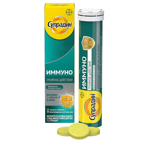 | БАД | Супрадин® Иммуно Про | Таблетки шипучие с риской: 15 или 30 шт. рег. №: RU.77.99.11.003.R.000095.01.23 от 19.01.23 *- Бессрочно* |