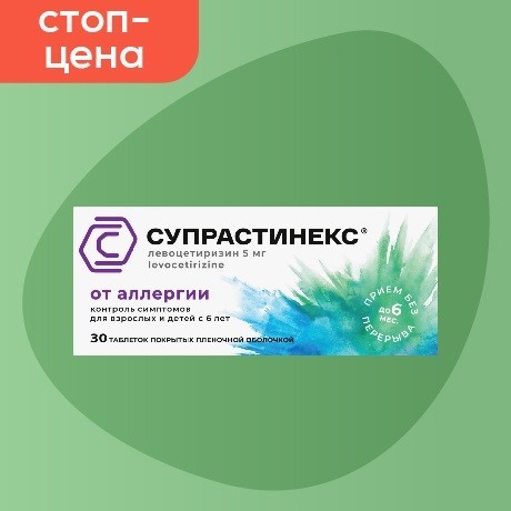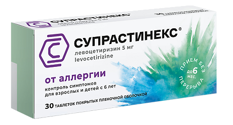 | Супрастинекс® | Таб., покр. пленочной оболочкой, 5 мг: 7, 10, 14, 20 или 30 шт. рег. №: ЛП-(001304)-(РГ-RU) от 12.10.22 *- Бессрочно* Предыдущий рег. №: ЛСР-008568/10 |
