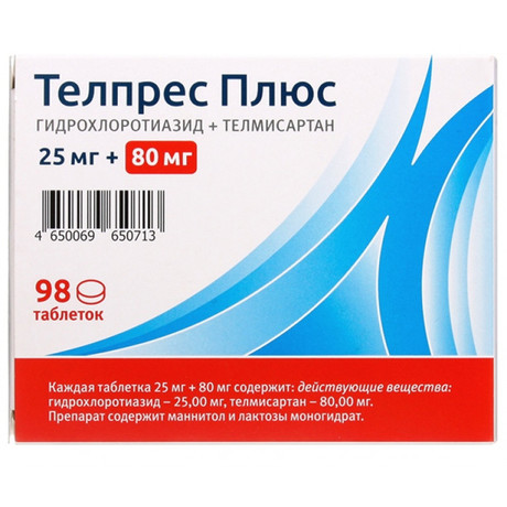| Телпрес Плюс | Таб. 25 мг+80 мг: 28 или 98 шт. рег. №: ЛП-004330 от 06.06.17 *- Действующее* Дата перерегистрации: 16.08.18 |