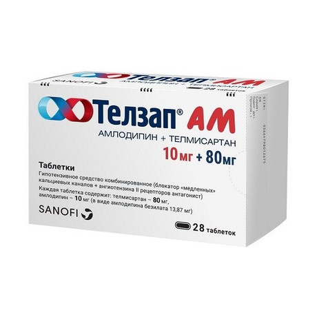 Препарат Телзап® AM содержит два гипотензивных вещества с взаимодополняющими механизмами действия, которые обеспечивают контроль показателей АД у пациентов с эссенциальной артериальной гипертензией; амлодипин принадлежит к фармакологической группе блокаторов медленных кальциевых каналов (БМКК), а телмисартан - к группе антагонистов рецепторов ангиотензина II (АРА II). Комбинация данных веществ проявляет аддитивный антигипертензивный эффект, вызывая более выраженное снижение АД, чем каждый из компонентов препарата по отдельности.