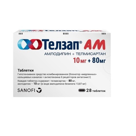Препарат Телзап® AM содержит два гипотензивных вещества с взаимодополняющими механизмами действия, которые обеспечивают контроль показателей АД у пациентов с эссенциальной артериальной гипертензией; амлодипин принадлежит к фармакологической группе блокаторов медленных кальциевых каналов (БМКК), а телмисартан - к группе антагонистов рецепторов ангиотензина II (АРА II). Комбинация данных веществ проявляет аддитивный антигипертензивный эффект, вызывая более выраженное снижение АД, чем каждый из компонентов препарата по отдельности.