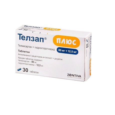 Препарат Телзап® Плюс, 12.5 мг + 80 мг можно применять 1 раз/сут у пациентов, АД которых не удается должным образом контролировать при приеме телмисартана в дозе 80 мг/сут.