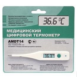 Артикул AMDT-14 Дисплей ЖК увеличенный дисплей, цена наименьшего разряда 0,1°С; Стекло специальной формы для удобства считывания показаний Влагоустойчивый корпус есть Ударостойкий корпус есть Тип корпуса Атравматический Подстветка Нет Размер (ВхШхД) 11 Х 21 Х 128 мм Кнопка включения Кнопки нет. Включение/выключение осуществляется встряхиванием. Диапазон измерения 32,0 до 42,0 °С Индикатор повышенной температуры Нет Самодиагностика при включении термометра индикация ошибки при температуре ниже 32,0°С индикация ошибки при температуре выше 43,0°С индикация разрядки источника питания Энергосберегающий режим автоматическое отключение термометра ~ через 15 минут после окончания измерения Память На 1 измерение Масса 11 г Питание 1,5В (LR44, AG13) Срок службы источника питания 5000 циклов измерения Футляр Есть