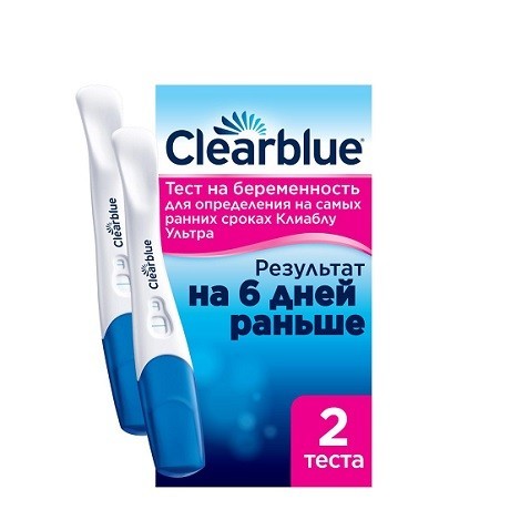Clearblue является товарным знаком SPD Swiss Precision Diagnostics GmbH («SPD»). © SPD, 2022Т ТЕСТ Д/ОПР БЕРЕМЕННОСТИ КЛИАБЛУ УЛЬТРА Раннее тестирование: результаты за 6 дней до дня задержки месячных (5 дней до ожидаемого начала менструации). Никакой другой бренд не является более точным: у Clearblue точность свыше 99 % со дня ожидаемого начала менструации. С помощью этого комплекта домашних тестов на беременность можно проводить тест за 6 дней до задержки месячных, то есть за 5 дней до ожидаемого начала менструации. Этот домашний тест на беременность разработан для максимальной простоты использования благодаря очень широкому окрашивающемуся наконечнику и эргономичной изогнутой ручке. У этого домашнего теста на беременность точность свыше 99 % со дня ожидаемого начала менструации, как вы и ожидаете от Clearblue. Уникальная технология Floodguard(TM) позволяет более чем на 70 % снизить вероятность возникновения самой распространенной ошибки пользователей (по сравнению с дизайном нашего предыдущего визуального теста), предотвращая попадание избыточного количества мочи на тест-полоску за счет очень широкого наконечника и обеспечивая правильный результат. Данное устройство предназначено для домашнего использования. Перед использованием внимательно прочтите прилагаемые инструкции.