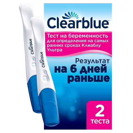 Clearblue является товарным знаком SPD Swiss Precision Diagnostics GmbH («SPD»). © SPD, 2022Т ТЕСТ Д/ОПР БЕРЕМЕННОСТИ КЛИАБЛУ УЛЬТРА Раннее тестирование: результаты за 6 дней до дня задержки месячных (5 дней до ожидаемого начала менструации). Никакой другой бренд не является более точным: у Clearblue точность свыше 99 % со дня ожидаемого начала менструации. С помощью этого комплекта домашних тестов на беременность можно проводить тест за 6 дней до задержки месячных, то есть за 5 дней до ожидаемого начала менструации. Этот домашний тест на беременность разработан для максимальной простоты использования благодаря очень широкому окрашивающемуся наконечнику и эргономичной изогнутой ручке. У этого домашнего теста на беременность точность свыше 99 % со дня ожидаемого начала менструации, как вы и ожидаете от Clearblue. Уникальная технология Floodguard(TM) позволяет более чем на 70 % снизить вероятность возникновения самой распространенной ошибки пользователей (по сравнению с дизайном нашего предыдущего визуального теста), предотвращая попадание избыточного количества мочи на тест-полоску за счет очень широкого наконечника и обеспечивая правильный результат. Данное устройство предназначено для домашнего использования. Перед использованием внимательно прочтите прилагаемые инструкции.