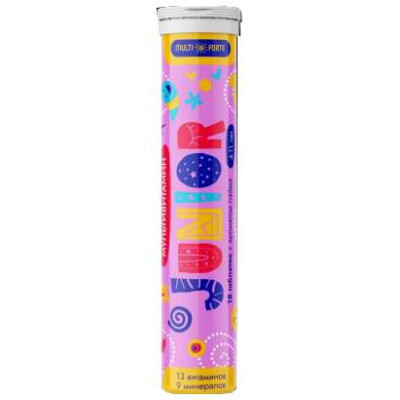 Активные вещества: Фруктоза, регуляторы кислотности (лимонная кислота, натрия гидрокарбонат), ароматизатор натуральный, стабилизатор полиэтиленгликоль, кальция глицерофосфат, L-аскорбиновая кислота, магния сульфат, никотинамид, железа сульфат, DL-альфа-токоферола ацетат, D-пантотенат кальция, цинка сульфат, марганца сульфат, рибофлавин, пиридоксин гидрохлорид, меди сульфат, тиамина мононитрат, ретинола ацетат, натрия селенит, калия йодид, фолиевая кислота, D-биотин, фитоменадион, цианокобаламин, холекальциферол.