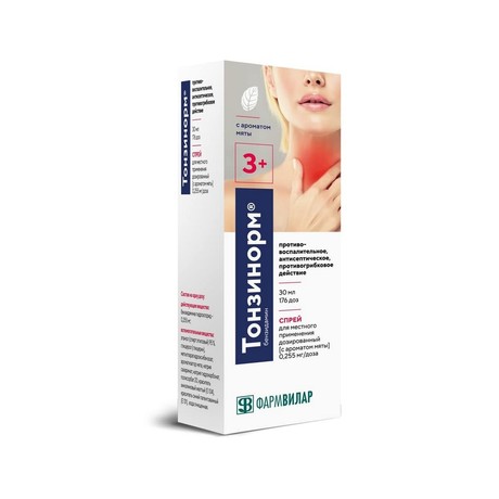 | Тонзинорм® | Спрей д/местн. прим. дозированный 0.255 мг/доза: фл. 30 мл, 50 мл или 100 мл рег. №: ЛП-006623 от 07.12.20 *- Действующее* |