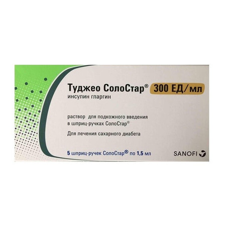 Единицы препарата Туджео СолоСтар® (инсулина гларгина 300 ЕД/мл) относятся только к препарату Туджео СолоСтар® и не эквивалентны другим единицам, выражающим силу действия других аналогов инсулина.