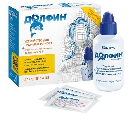 Устройство оториноларингологическое для промывания индивидуальное «ДОЛФИН», емкостью 120 мл, в комплекте со средствами для промывания.