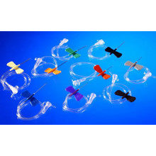 Крылья окрашены в разные цвета, в соответствии с размером и диаметром иглы, согласно международной цветовой кодировке. Устройство снабжено иглой со специальной заточкой и силиконовой обработкой, что делает проникновение в ткани наименее болезненным. В комплект устройства для вливания в малые вены иглы “бабочка” входит изломоустойчивый шланг длиной 30 см, позволяющий выполнять процедуру на удалении от места пункции.