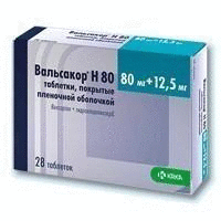 действующие вещества: валсартан 80 мг, гидрохлоротиазид 12,5 мг,