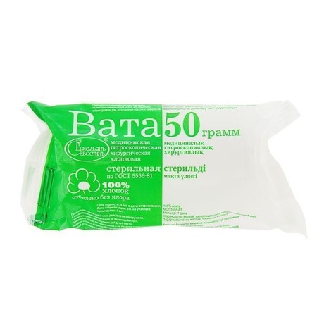 Вата гигроскопическая медицинская хирургическая стерильная производится из 100% хлопковых волокон. Широко применяется в медицинской практике, а так же в составе различных ватно-марлевых изделий: повязок, подушечек, тампонов и пр. Может применяться в случае контакта с открытой раневой поверхностью. Обладает повышенной гигроскопичностью - быстро впитывает раневое отделяемое, а высыхая хорошо испаряет влагу. Незаменима при проведении общехирургических манипуляций. Стерилизуется радиационным методом.