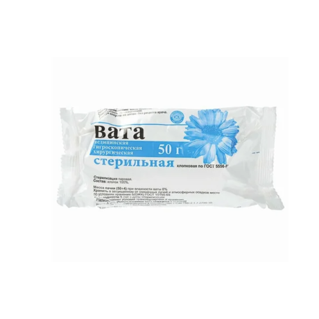 Вата медицинская стерильная хирургическая 50 г пачка