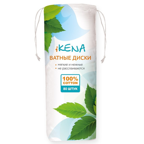 Диски iKENA из белоснежного хлопка, обработанного без применения хлора, нежно и бережно ухаживают за кожей, отлично впитывают влагу и косметические средства, не оставляют ворсинок, дарят ощущение чистоты и комфорта.