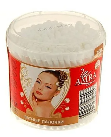 Ватные палочки - 200 шт в пластиковом стакане. AMRA Ватные палочки (цилиндр). Внешний вид: цвет белый, без аромата. Ватные палочки из 100% хлопка на гибком пластиковом стике надежно зафиксированы и обеспечивают максимальное удобство при использовании. Мягкие, гибкие, обладают гигроскопичностью. Намотка, не сползает при использовании. Результат: очищение, корректировка макияжа.