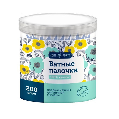 ComForte Ватные палочки №100 для ежедневной гигиены и для ухода за ребёнком, мягко удаляет загрязнения. 100% хлопок. Основание палочки из пластика. Вата плотно намотана, хорошо закреплена, не соскальзывает со стика, не оставляют волокон ваты на коже, отличная впитываемость. Подходят для ежедневной гигиены любого возраста. Удобны в применении, мягко удаляет загрязнения. Упругая палочка - не гнется при использовании.