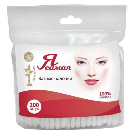 Палочки ватные «Я самая» изготовлены из стопроцентного хлопка. Изделия применяются для косметических и гигиенических целей. Мягкие белые ватные подушечки, имеющие классическую форму, аккуратно намотаны на пластиковые палочки, имеющие длину 75 мм. Изделия облегчают нанесение макияжа и гигиенический уход за детьми.