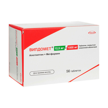 Препарат Випдомет® представляет собой комбинацию двух гипогликемических средств с взаимодополняющими и разными механизмами действия, предназначенную для улучшения контроля гликемии у пациентов с сахарным диабетом 2 типа (СД2): алоглиптина, ингибитора фермента дипептидилпептидазы-4 (ДПП-4), и метформина, представителя класса бигуанидов.