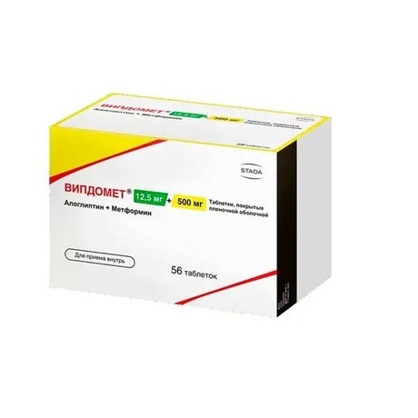 Препарат Випдомет® представляет собой комбинацию двух гипогликемических средств с взаимодополняющими и разными механизмами действия, предназначенную для улучшения контроля гликемии у пациентов с сахарным диабетом 2 типа (СД2): алоглиптина, ингибитора фермента дипептидилпептидазы-4 (ДПП-4), и метформина, представителя класса бигуанидов.