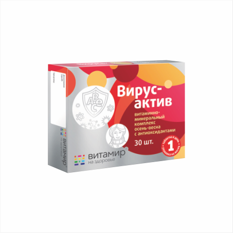 ВирусАктив - биологически активная добавка к пище для поддержания здоровья в период смены сезонов. Содержит в себе необходимое количество витаминов и минералов, которые помогают поддерживать иммунитет и защищать организм от вредных воздействий окружающей среды. Благодаря наличию антиоксидантов, этот препарат помогает предотвратить преждевременное старение клеток и поддерживает здоровую кожу. Комплекс выпускается в виде таблеток, которые легко принимаются и усваиваются без труда. ВирусАктив- это надежный помощник в поддержании здоровья в любое время года.